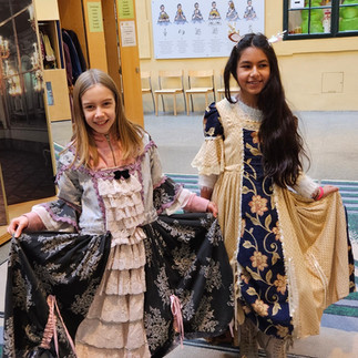 Die Schüler*innen arbeiteten sehr fleißig in Gruppen zusammen, um Aufgaben zu lösen. Beispielsweise durften sie typische Weihnachtsgewürze erraten oder die Kleidung der damaligen Herrschaften probieren. Es verblieb auch noch Zeit, um Leckereien des Weihnachtsmarktes zu probieren oder kunstvolle Handwerksarbeiten zu bestaunen. Der Duft von gebrannten Mandeln und Zimt zog durch die Lüfte und ließ bei unseren Schüler*innen eine ganz besondere Weihnachtsstimmung aufkommen.